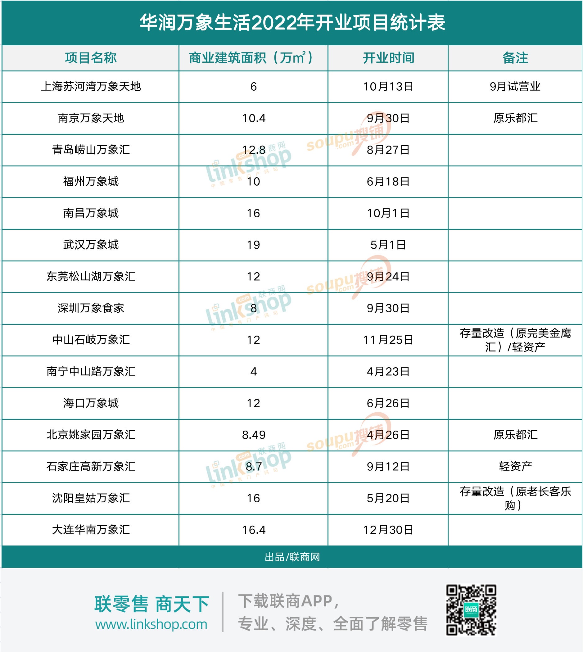 同時,在輕資產(chǎn)的戰(zhàn)略擴(kuò)張下,華潤萬象生活持續(xù)提速。據(jù)聯(lián)商網(wǎng)零售研究中心統(tǒng)計,2022年華潤萬象生活新開商業(yè)項(xiàng)目高達(dá)15個。最標(biāo)桿的萬象城產(chǎn)品完成了不少區(qū)域的首進(jìn),比如海南島上的首座萬象城在?诹料啵喜氖鬃f象城,福州和武漢兩個城市也迎來了萬象城,上海和南京也首次迎來了萬象天地。