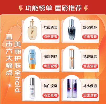 為給消費者提供更全面、實用的初春美妝護膚購物參考,京東新百貨“美妝2.28超級品類日”聚焦春日護膚需求,發(fā)布“舒緩鎮(zhèn)靜”、“滋潤防曬”“美白淡斑”、“補水保濕”、“抗衰抗氧”、“抗痘清潔”六大功能性榜單,按照當(dāng)下消費者不同護膚需求進行產(chǎn)品推薦。