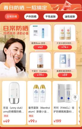 活動專場還設(shè)置多個主題專區(qū),包括送禮、防曬專區(qū)等,根據(jù)不同消費者的購物需求,為消費者提供更精準(zhǔn)的選購指南。