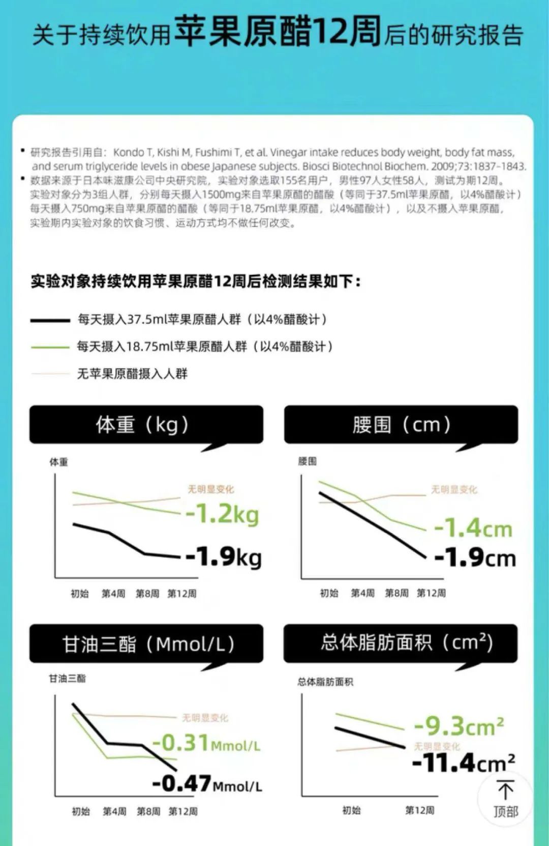該報(bào)告顯示,持續(xù)飲用蘋果原醋12周后,體重、腰圍和脂肪量都會(huì)顯著下降。