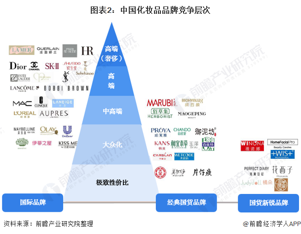 總的來看,目前國內(nèi)的化妝品市場競爭梯隊(duì)劃分較為明顯,高端和高奢市場幾乎由國際大品牌壟斷,而我國本土的化妝品品牌只在大眾化市場中才占有一席之地。