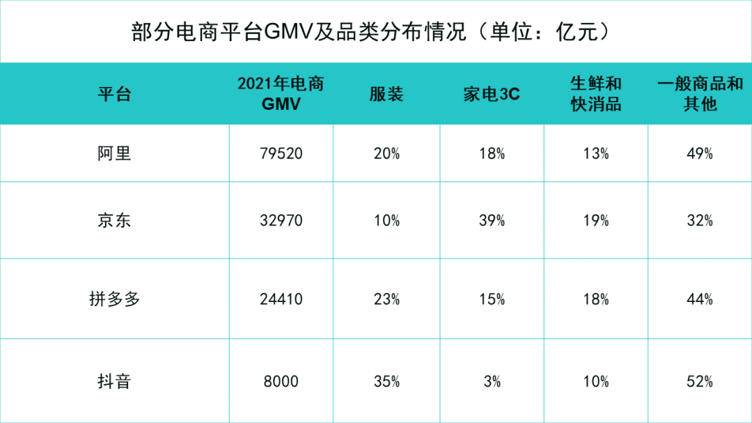 另一方面,隨著近年抖音快手以及拼多多等興起,電商新勢力迅速分食傳統(tǒng)電商平臺市場。