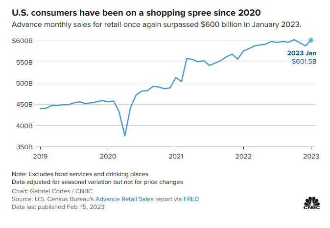 美國1月消費(fèi)者價(jià)格指數(shù)(CPI)同比上漲6.4%,數(shù)據(jù)遠(yuǎn)高于預(yù)期,超過美聯(lián)儲(chǔ)此前設(shè)定的通脹目標(biāo)。
