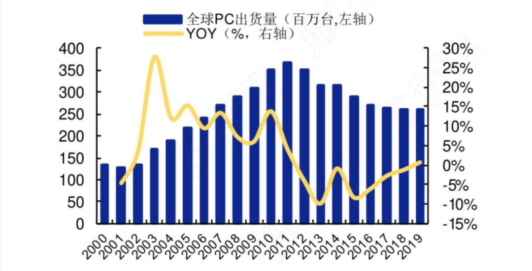 圖/2000-2019年全球PC出貨量統(tǒng)計 來源/Garter,安信證券研究中心