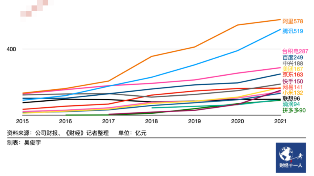 圖:互聯(lián)網(wǎng)頭部企業(yè)研發(fā)投入,來源:財經(jīng)十一人