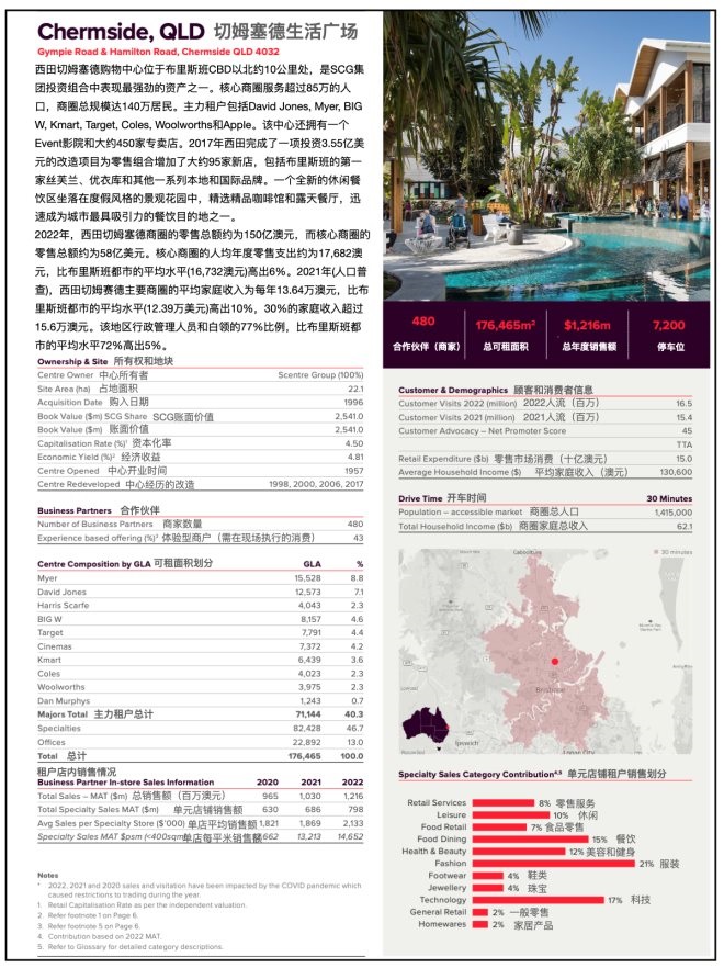 澳大利亞的西田集團(SCG)近日公布了2022年的經(jīng)濟表現(xiàn)數(shù)據(jù)。筆者日前以《購物中心如何走出疫情困境?看國際標桿西田的做法》為題在聯(lián)商網(wǎng)發(fā)布,以西田公開的人流量、銷售額、租金和資產(chǎn)價值等數(shù)據(jù)對西田從2019年到2022年的情況做了綜合的對比分析和闡述。但在那篇文章里面筆者沒有介紹西田2002年經(jīng)濟數(shù)據(jù)所附的一個西田資產(chǎn)包簡報。說是簡報,但是其對西田購物中心所披露的信息可以說是非常的透明和全面。