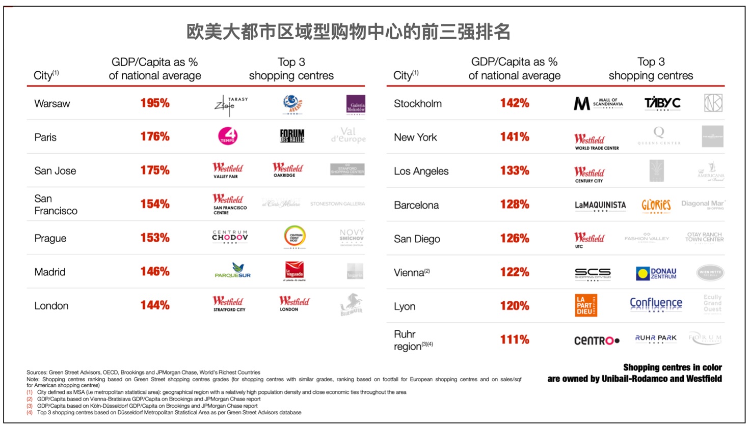 圖5是布魯金斯學院和國際經(jīng)合組織對歐美大都市的購物中心根據(jù)人流量和銷售額的排名。可見在倫敦、紐約、洛杉磯、舊金山這些只要有西田購物中心的城市,西田就一定是這個城市第一名的購物中心;如果在這個城市有兩個購物中心,比如倫敦和圣何塞(硅谷),那么第二名的購物中心也是西田的。