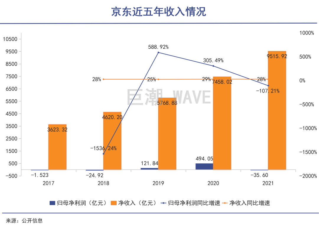 2021年,京東營(yíng)收達(dá)到9515.92億元,員工數(shù)超過42萬(wàn)人,收入體量和員工人數(shù)均位居中國(guó)民營(yíng)企業(yè)第一名。