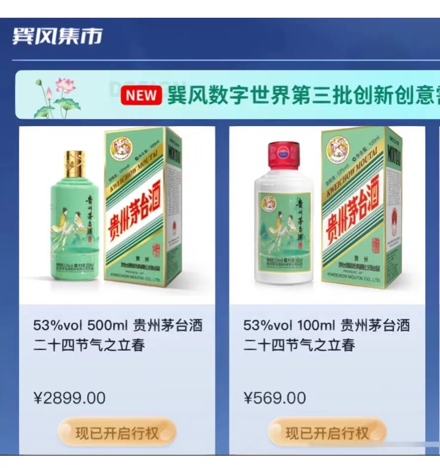 因此,在巽風的玩法設(shè)置中,“限量版”的概念被反復(fù)強調(diào)。在此次茅臺立春酒的發(fā)售中,巽風APP只投放了11萬份立春酒的數(shù)字藏品,其中500ml的有3萬份,100ml的有8萬份。只有成功獲得數(shù)字藏品,才有可能搶購實體茅臺酒?梢姡粌H數(shù)字藏品是限量發(fā)布,茅臺酒的購買名額更是珍稀。