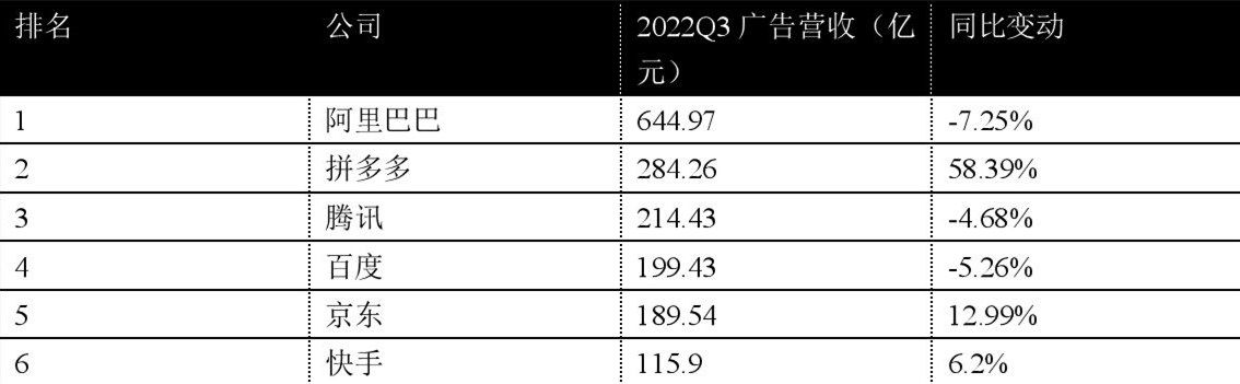 2022Q3互聯(lián)網(wǎng)上市公司廣告營(yíng)收排名