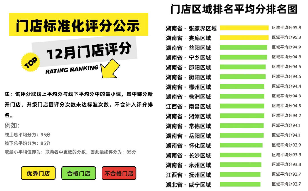 據(jù)官方招商資料顯示,門店評(píng)分95以上是優(yōu)秀、94-90為合格、89以下不合格。