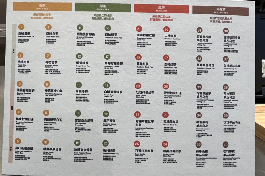 茶均選自栽培自國(guó)內(nèi)的代表性品種,分為福建白茶、浙江綠茶、浙江紅茶、廣東烏龍茶四類(lèi)基礎(chǔ)茶,輔之花朵、果干等配料,以透明圓柱形小盒陳列于架上。據(jù)悉,后續(xù)會(huì)根據(jù)季節(jié)進(jìn)行產(chǎn)品更替。