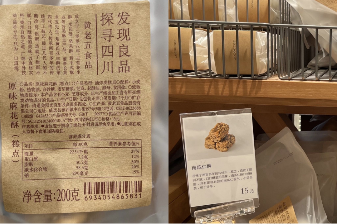 此外,與B1室內(nèi)中庭鄰近的高人流區(qū)域,MUJI集中放置了具有相似品牌理念、本土特色的其他品牌產(chǎn)品代銷(xiāo)售賣(mài),如一米市集的肉松系列、大地物源的菌菇醬系列。
