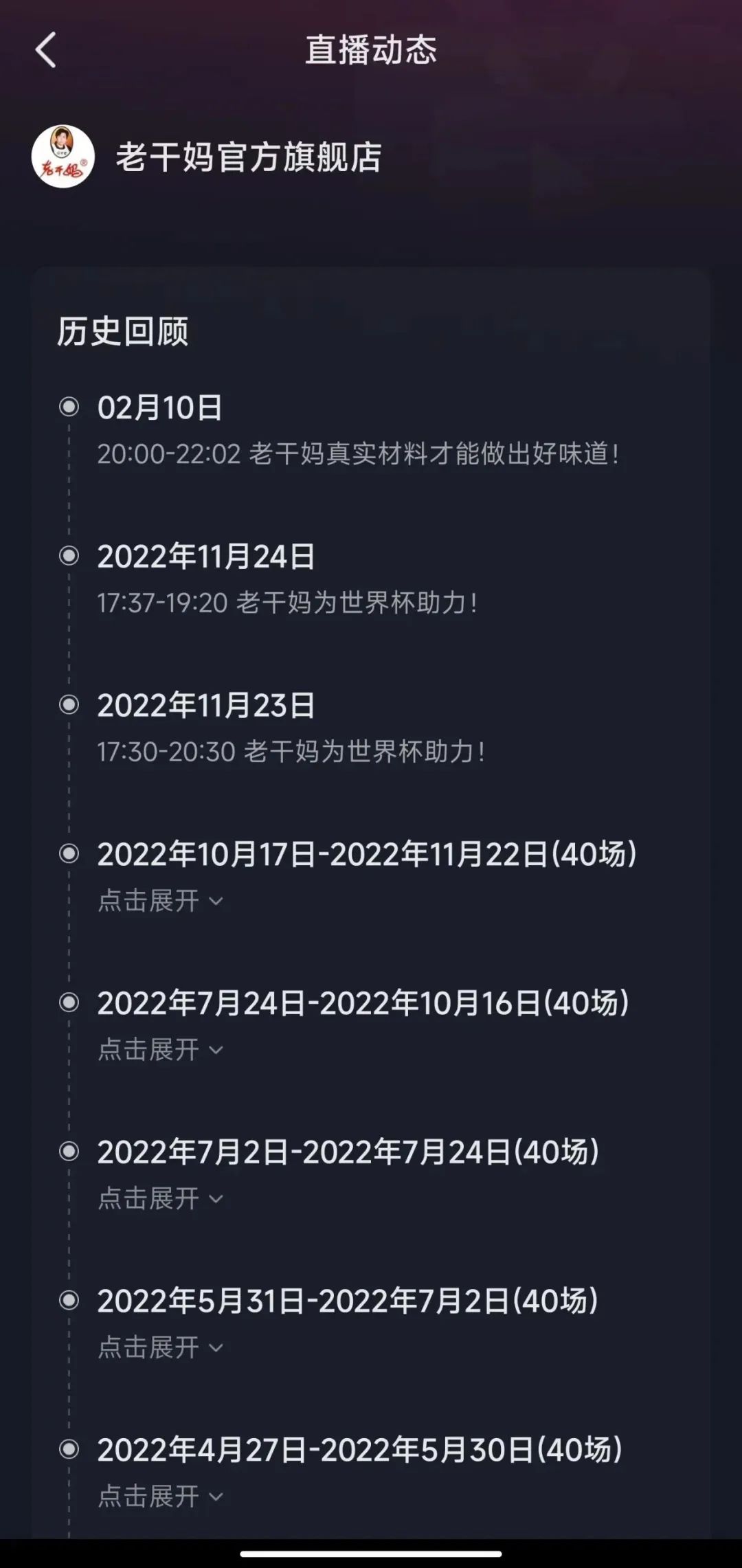 過去一年, 老干媽的抖音賬號幾乎每天都開啟直播帶貨,堪稱直播界的“勞!薄H欢,自去年“為世界杯助力”后老干媽就幾乎停止了直播,最近一次直播記錄還停留在2月10日。截止發(fā)稿前,老干媽抖音賬號的日常視頻內(nèi)容也仍停留在2月10日。