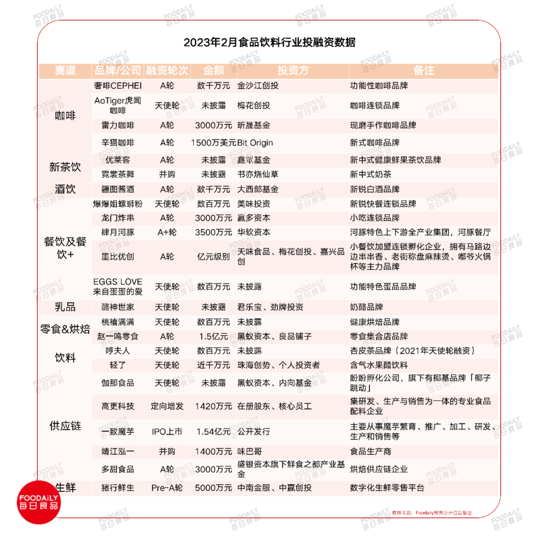 以下為2月食品飲料投融資數(shù)據(jù)匯總: