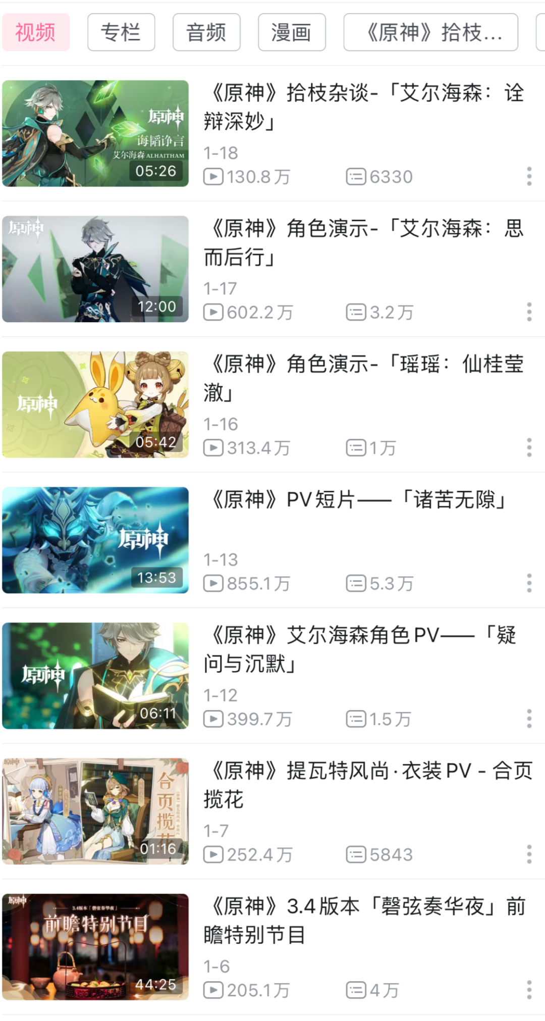 圖/B站《原神》官方主頁(yè)視頻播放量