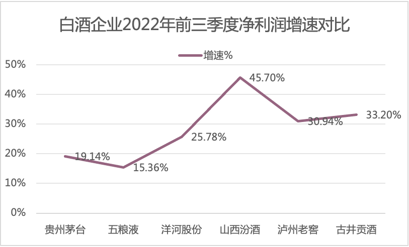 凈利潤(rùn)對(duì)比來(lái)看,今年前三季度,貴州茅臺(tái)實(shí)現(xiàn)歸母凈利潤(rùn)444億元,同比增長(zhǎng)19.14%;山西汾酒歸母凈利潤(rùn)同比增速達(dá)45.7%;洋河股份、瀘州老窖、古井貢酒增速均超過(guò)20%;六家酒企中,五糧液歸母凈利潤(rùn)增速同樣處于最低水平。