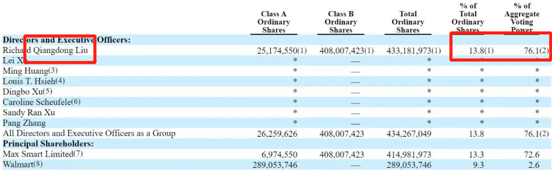 同時,在京東股權(quán)結(jié)構(gòu)披露中,截至2022年4月,劉強東持股13.8% 有76.1%投票權(quán)。