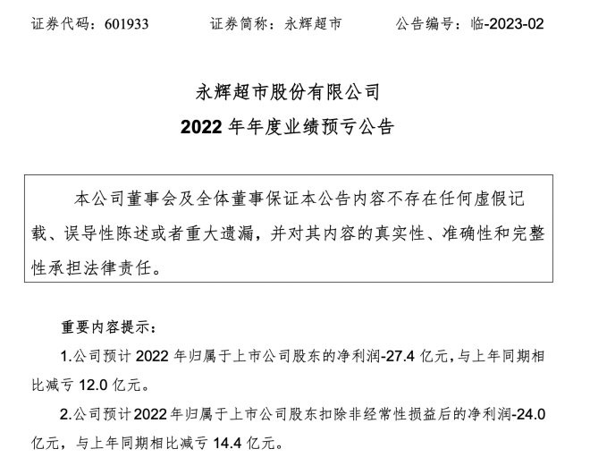 2022年主要超市業(yè)績快報出爐:集體預(yù)虧