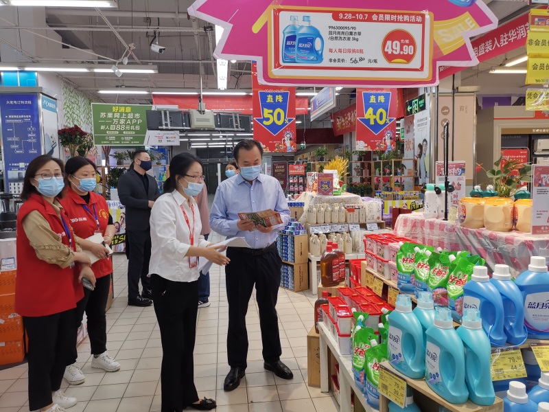在南京曉莊購物廣場,陳兵總對門店疫情防控,安全工作開展等情況進行現(xiàn)場檢查。同時,也對國慶活動、重點商品、重點業(yè)務等經(jīng)營情況進行了檢查。陳兵總強調(diào),門店要高度重視安全工作,及時全面排查、整改EHSQ風險隱患,嚴格執(zhí)行各類標準操作流程;要認真落實重點商品和主要活動。此外,陳兵總還調(diào)研了當天開業(yè)的鼓樓電信好的便利店。