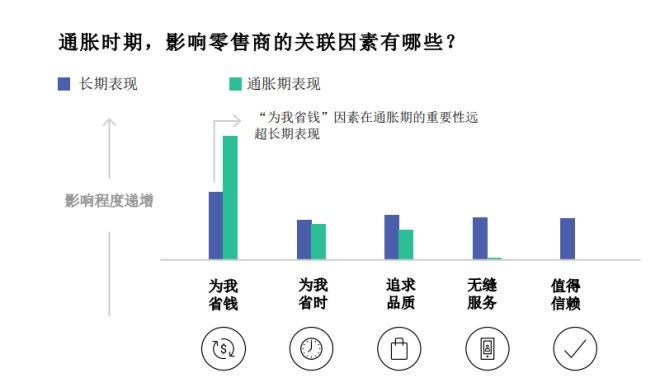 為了維持生計(jì),顧客至少暫時(shí)愿意降低質(zhì)量要求。為了推動(dòng)通脹期的業(yè)績(jī),“為顧客省錢(qián)”比提供“高質(zhì)量產(chǎn)品”重要5倍。但長(zhǎng)遠(yuǎn)來(lái)看,“為顧客省錢(qián)”只比提供“高質(zhì)量產(chǎn)品”重要1.5倍