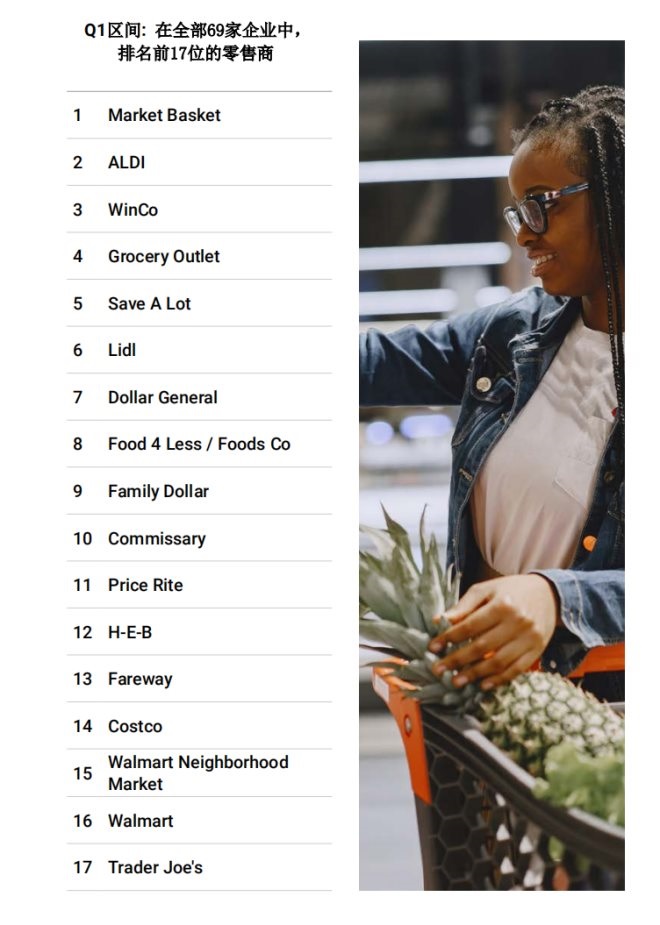 部分零售商始終堅(jiān)持未雨綢繆的經(jīng)營(yíng)理念,并提前做好了應(yīng)對(duì)通脹的準(zhǔn)備,如區(qū)域性商超Market Basket和Winco,以及全國(guó)性的折扣商ALDI。這些零售商在這份報(bào)告的排名中占據(jù)前三位。