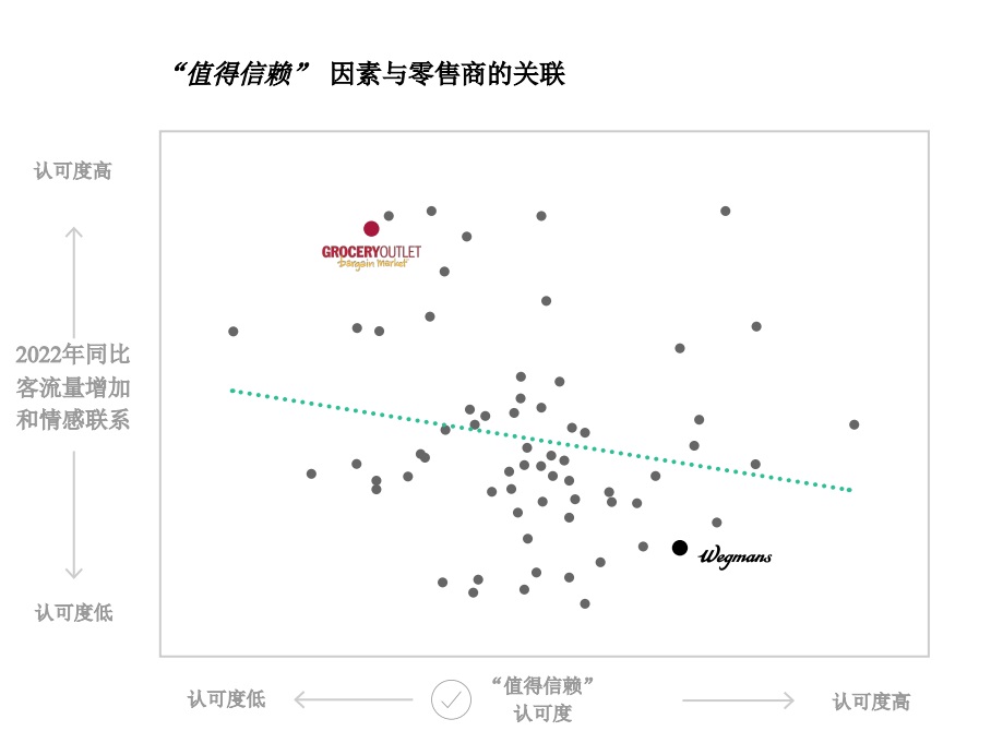 通脹時(shí)期,對(duì)于主打優(yōu)質(zhì)專(zhuān)業(yè)的區(qū)域性零售商而言,無(wú)異于是逆風(fēng)前行,如Sprouts、Wegmans和The Fresh Market,以及Publix和Harris Teeter等。2022年,這些零售商的客流量同比增長(zhǎng)值落后于市場(chǎng)整體水平。
