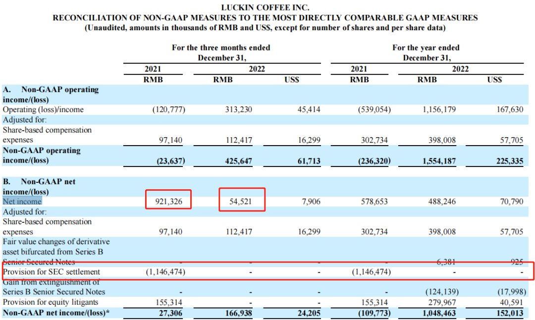 對(duì)于利潤(rùn)的異常降幅,瑞幸咖啡在財(cái)報(bào)中給出了解釋:主要是由于罰款的支出造成了利潤(rùn)的銳減,此前瑞幸咖啡在2020年被美國(guó)證券交易委員會(huì)指控2019年財(cái)務(wù)數(shù)據(jù),該指控在本季度終于達(dá)成和解,為此瑞幸繳納了約11.465億元的巨額罰款。