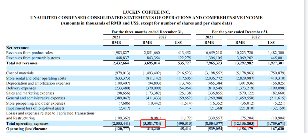 3月2日,瑞幸咖啡發(fā)布2022年Q4季度及全年財(cái)報(bào)。