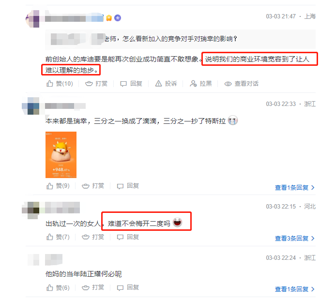 而作為瑞幸2.0的庫(kù)迪,有股民犀利點(diǎn)評(píng)道:“若庫(kù)迪能夠再次創(chuàng)業(yè)成功,說(shuō)明我們的商業(yè)環(huán)境寬容到了讓人難以理解的地步!