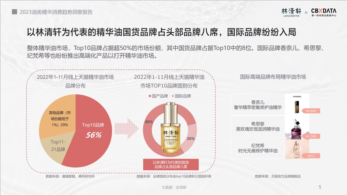以林清軒為代表的精華油國(guó)貨品牌占頭部品牌八席,國(guó)際品牌紛紛入局