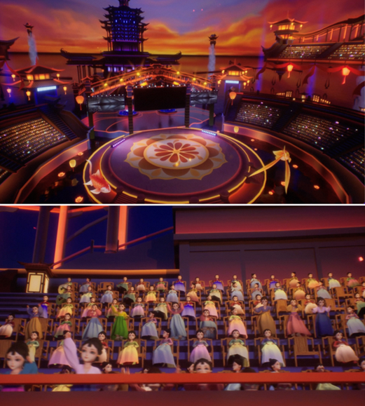 每一個進(jìn)入3D音樂節(jié)的觀眾,可操作、裝扮自己的虛擬形象,在仙俠世界里漫游,聽明星演唱,給偶像打call,甚至一起跳舞,還可以乘熱氣球游覽水云天,體驗(yàn)電影級的視覺盛宴,參與關(guān)卡活動還有機(jī)會獲得1388元的天貓紅包。有網(wǎng)友留言,仿佛看到未來演唱會的樣子。