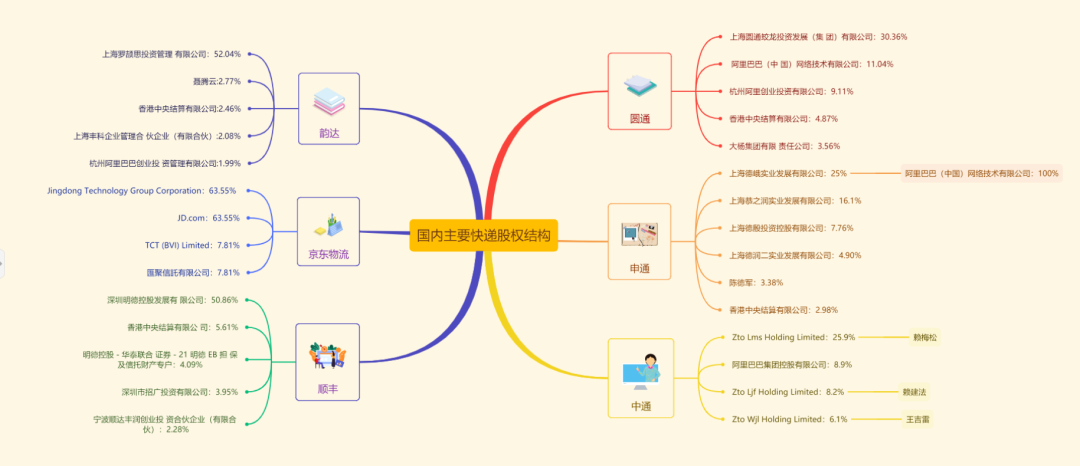 值得注意的是,菜鳥雖然在技術(shù)上給通達系快遞帶來了更多的突破,但同時也開始侵吞通達系。近年來,阿里不斷投資通達系快遞企業(yè),目前,阿里已經(jīng)是申通的第一大股東,中通、圓通的第二大股東,是韻達的第五大股東。