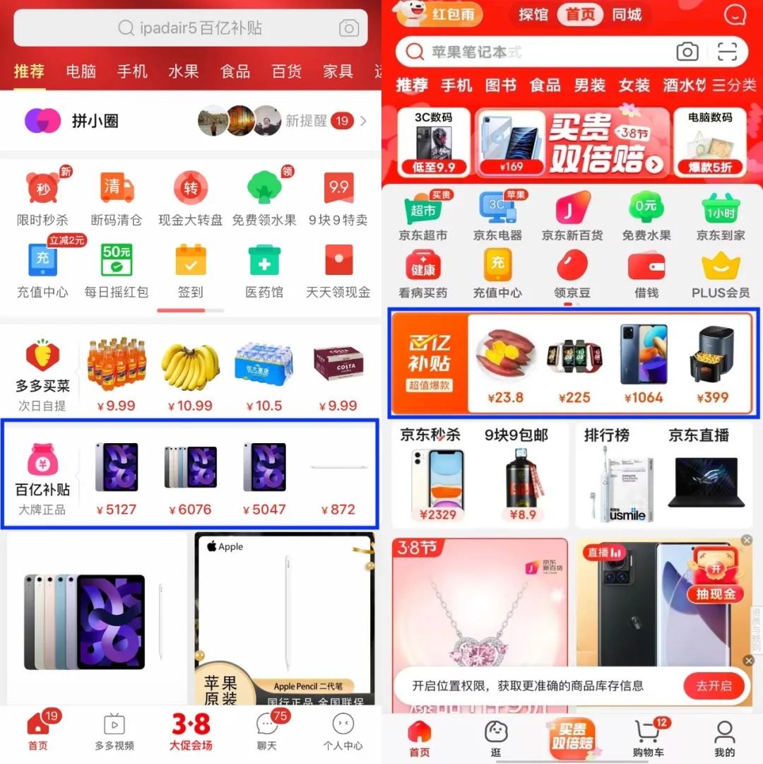 京東和拼多多百億補貼入口