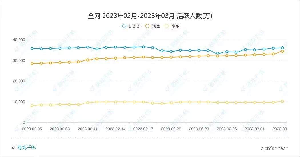 三家電商頭部平臺全網(wǎng)日活數(shù)據(jù)