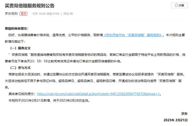 “買貴雙倍賠”規(guī)則