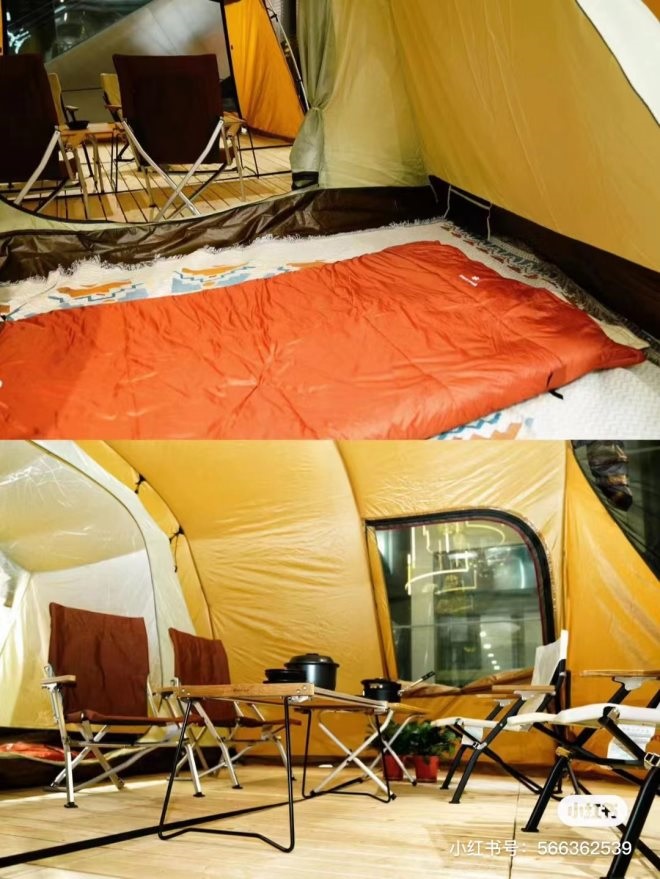 首店選用了淺咖色木材為主要裝修元素,在明亮燈光照耀下,整個門店溫馨舒適、陽光清新,給人一種身處戶外的感覺。門店內(nèi)有序陳列著帳篷、天幕、寢室?guī)、客廳帳、移動廚房、戶外折疊椅,以及臺式瓦斯?fàn)t、開口箱、燈具等一系列產(chǎn)品。其中,帳篷等產(chǎn)品直接搭建在門店地面,將產(chǎn)品更直觀、清晰地展現(xiàn)給消費者,給消費者塑造一種戶外露營感,于無形中提升購買欲望。