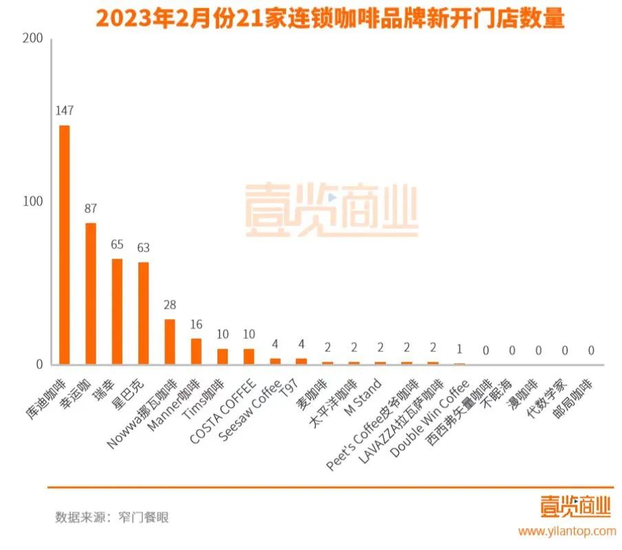 21家咖啡品牌2月新增445家店,庫(kù)迪咖啡背刺瑞幸