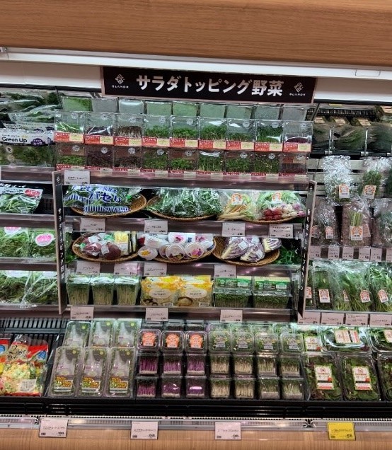沙拉是日本人日常生活中必不可缺少的內(nèi)容,也是超市蔬菜部門極其重視的品群,越是靠近城市,對沙拉的需求越是呈現(xiàn)出剛需與高頻特點(diǎn)。BLANDE用了七個風(fēng)幕柜展示沙拉關(guān)聯(lián)賣場,圖4是“沙拉用Topping配料用蔬菜”賣場,將沙拉中的Topping配料做深做透,推出沙拉品群備齊上的差別性。如此不僅滿足對沙拉講究的客群的需求,同時,在沙拉的“配料”上做文章,將日常性演繹出“非日常性”,可謂一箭多雕。