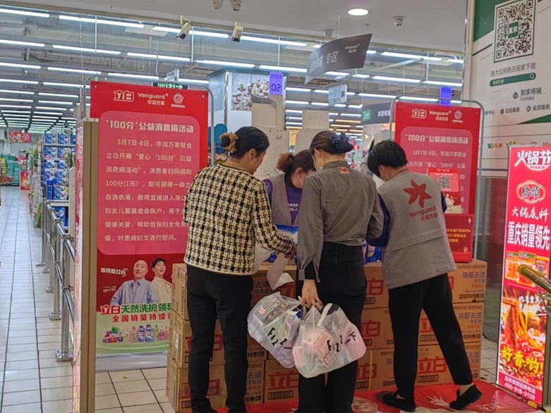 而這僅僅是萬家不斷優(yōu)化消費體驗的其中一步。在前段時間三八婦女節(jié)之際,華潤萬家浙江公司還攜手浙江省婦女兒童基金會和優(yōu)質(zhì)合作伙伴立白在杭州濮家店、寧波余姚五彩城店兩家店開展活動開展“愛心‘100分’公益消費捐”活動。只要捐出一元錢,就能獻(xiàn)出100分愛心,還能帶走一袋立白洗衣液。