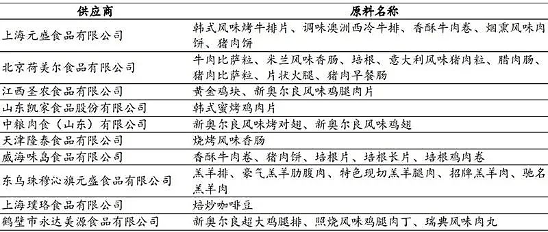 百勝(上海)主要食品原料供應(yīng)商名單(部分)