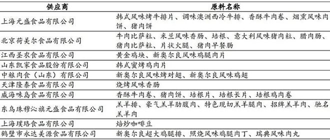 (2)使用品類齊全的第三方供應(yīng)鏈公司(如望家歡、樂禾食品、彩食鮮)統(tǒng)一采購配送;
