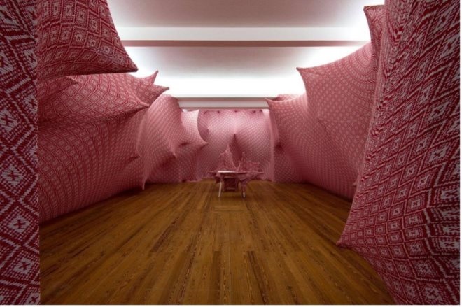 杰羅姆·戈貝 《自由引導(dǎo)羊毛》 木結(jié)構(gòu)、金屬桿、羊毛編織 尺寸可變 2013 -2016