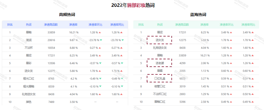從消費者端來看,消費者對臉部彩妝的分膚意識逐漸增強。“遮瑕、控油、提亮仍為主要需求,但針對油皮、干皮、淚溝等部位的處理也逐漸受到消費者關注!绷_興分析道。除此之外,唇部彩妝存在非常高的“送禮”特性!2022年,很可能是依靠‘送女友’、‘送老婆’帶動了整體增長!