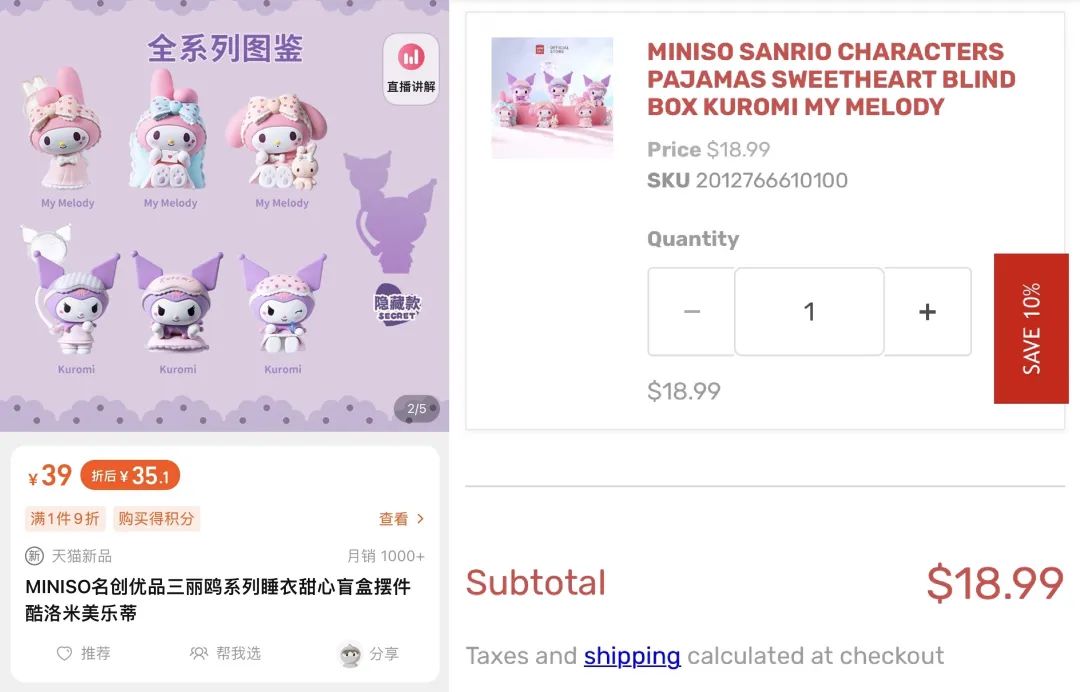 出了國(guó)的名創(chuàng)優(yōu)品,賣著與國(guó)內(nèi)相差無(wú)幾的日用百貨、毛絨玩具和無(wú)火香薰,價(jià)格卻讓家鄉(xiāng)網(wǎng)友不敢相認(rèn)——20美元的頸枕和水杯,打完六折還要5美元一顆的美妝蛋,同一款盲盒掛上海外官網(wǎng)、起手就是三倍價(jià)差。