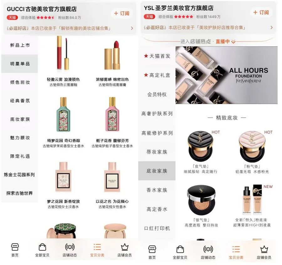 Gucci、YSL美妝產(chǎn)品,截自淘寶