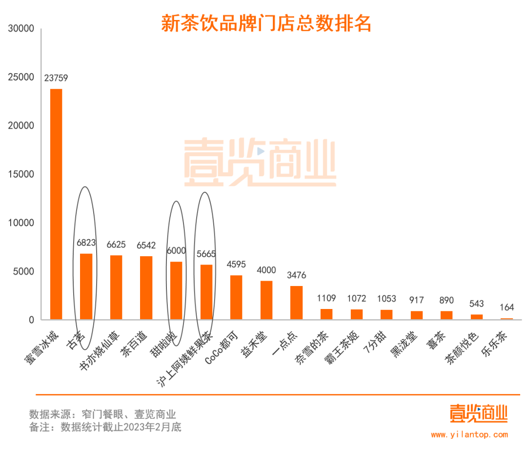 據(jù)窄門餐眼數(shù)據(jù)及官網核實顯示,甜啦啦門店現(xiàn)存門店約6000家、古茗門店6823家、滬上阿姨5665家,均表示在2023年有加碼拓店目標。