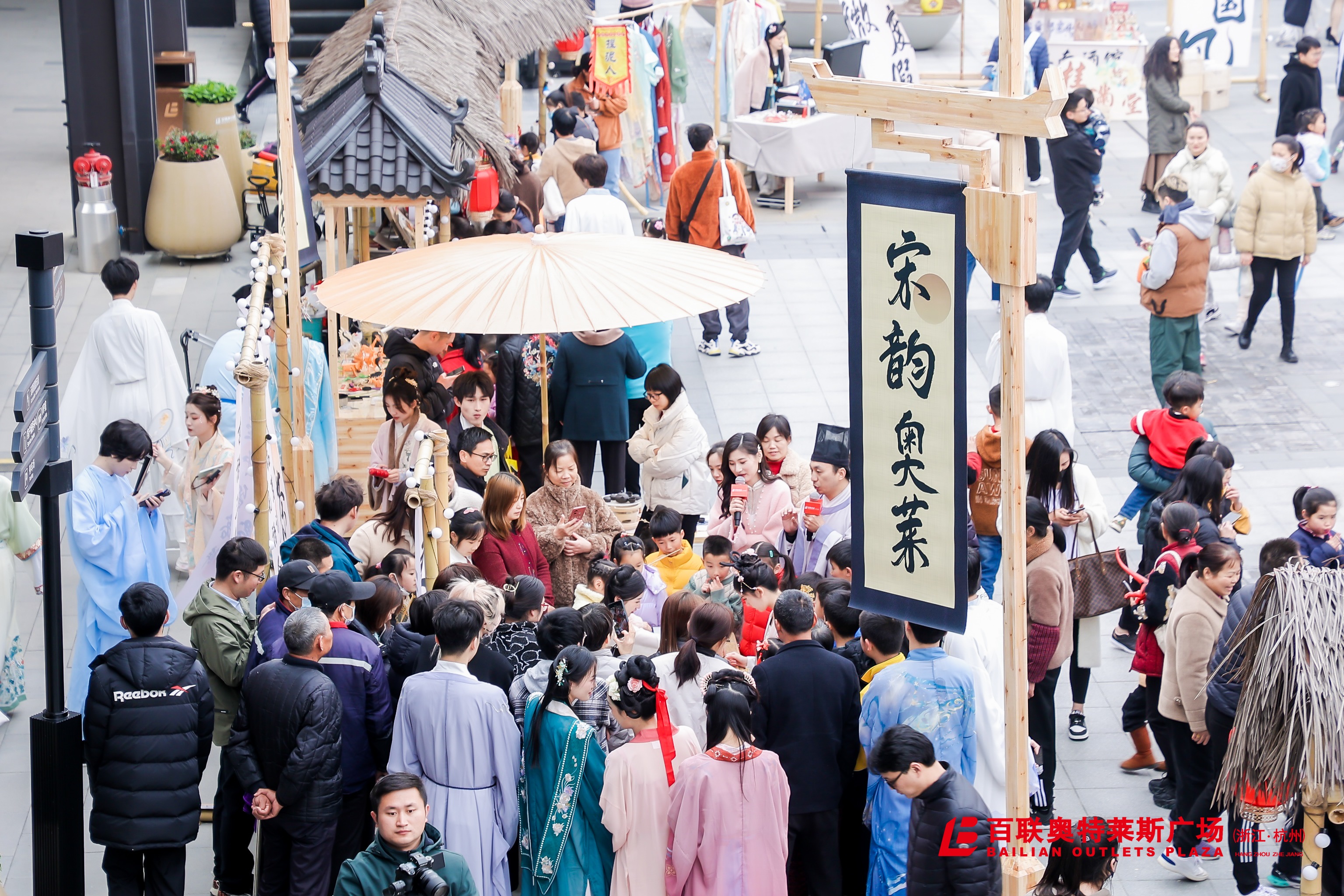本次國(guó)風(fēng)漢服節(jié)旨在帶領(lǐng)大家穿越近千年的時(shí)光,于絢爛的視聽(tīng)盛宴中,將宋朝的唯美雅致與城市的民俗風(fēng)情融于一體,講述一段宋朝傳奇。在匠心打磨下,一個(gè)既符合美學(xué)法則,又能承載宋韻文化內(nèi)核的視覺(jué)場(chǎng)景,映入我們的眼簾,它與杭州百聯(lián)奧萊自有的中式美學(xué)建筑結(jié)構(gòu),完美融為一體交相呼應(yīng)。同時(shí)也讓建筑美學(xué)與人文國(guó)風(fēng)水乳交融,淋漓盡致地展現(xiàn)“意蘊(yùn)、高雅、悠然、寫(xiě)意”的東方消費(fèi)文化與宋文華的風(fēng)雅意趣。