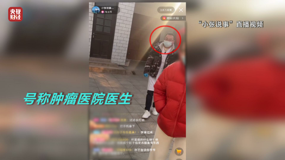 賬號(hào)名為“小張說事”的一期直播中,小張稱自己姐姐做了壞事,要將其送進(jìn)監(jiān)獄。結(jié)果姐姐的婆婆假扮成收破爛的,從小張爺爺處騙了一盒產(chǎn)品,小張急于討回。這時(shí)突然出現(xiàn)了一位“腫瘤醫(yī)生”,說這盒產(chǎn)品能治腫瘤,“關(guān)鍵時(shí)刻能把我們的肺保護(hù)起來”。