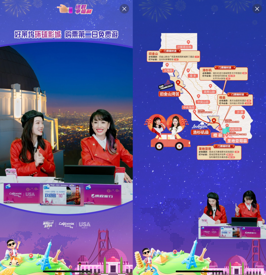 緊接著在1月19日,攜程又與聯(lián)合美國(guó)國(guó)家旅游局和加州旅游局開(kāi)啟了直播活動(dòng),直播中售出了酒店套餐、好萊塢環(huán)球影城、加州迪士尼門(mén)票等多種產(chǎn)品。